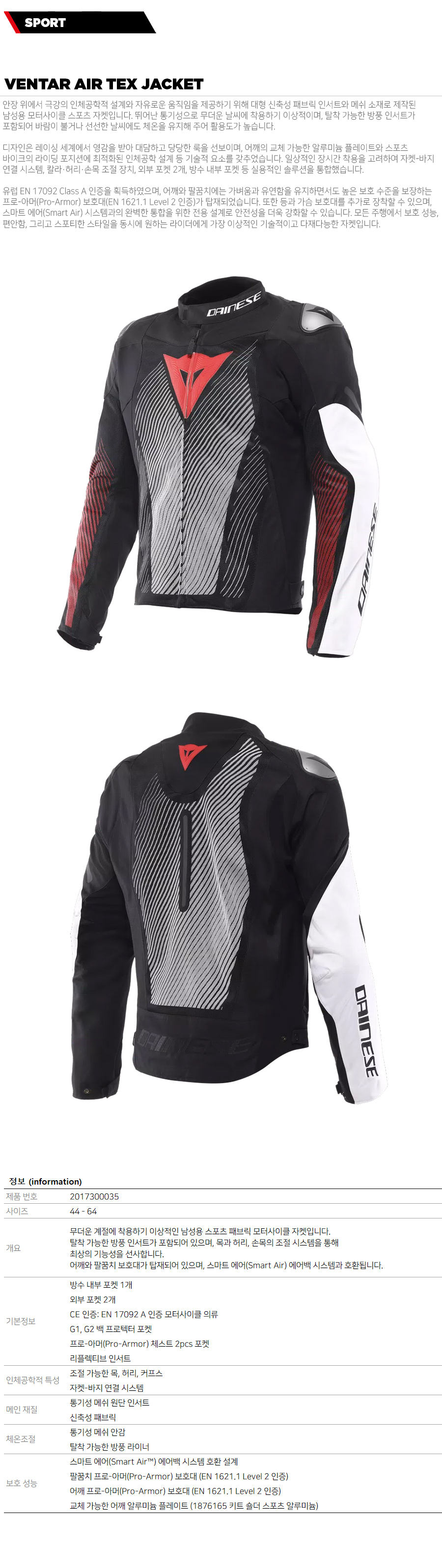 품명 : 자켓 VENTAR AIR TEX JACKET
